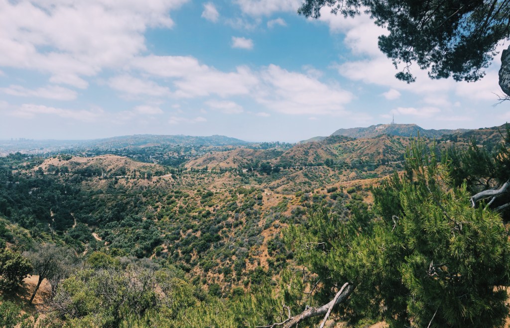 - Want to see some good views? Head to the Griffith Observatory. Drive all the way to the top and park in the observatory parking lot (for $8 an hour). People will stop early and will park on the street (also $8 an hour). Don’t! We were there when it was SUPER crowded and there was still parking in the main, top parking lot. Just keep driving. From the parking lot, you can walk around the observatory and see amazing views of downtown and the Hollywood sign. You can also walk towards the opposite side of the parking lot and hike the Charlie Turner trail (there’s a trailhead, map, and some benches close to the parking lot). It’s 4 miles out to the Hollywood sign (8 round trip), but you can easily hike the 1.2 miles to the Captain’s Roost and see some incredible 360-degree view of downtown, the observatory, and the Hollywood sign. I only hiked the trail about .7 miles and STILL had incredible views. It’s a very easy trail and worth the short walk.