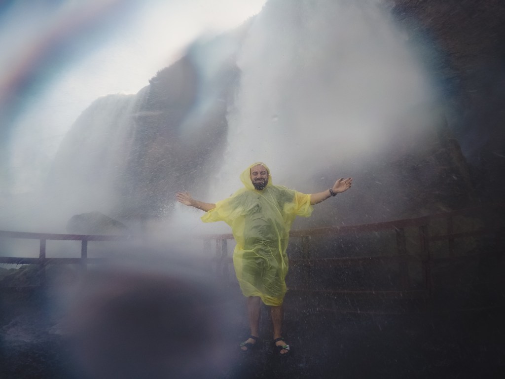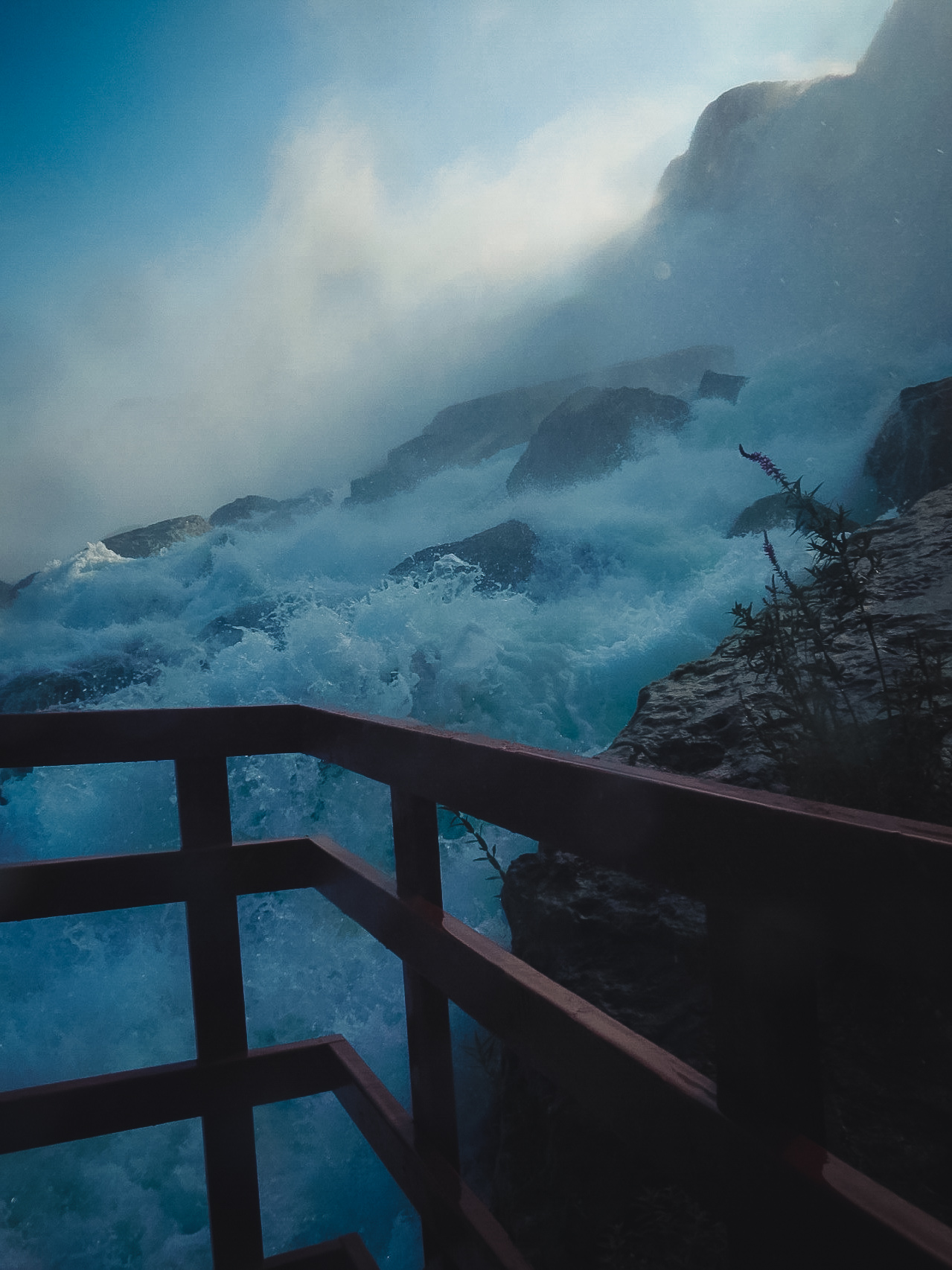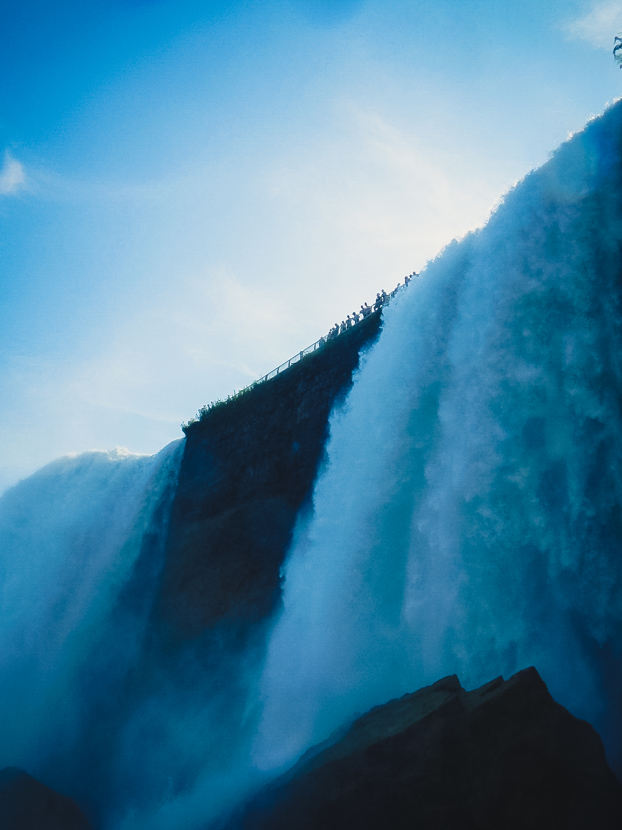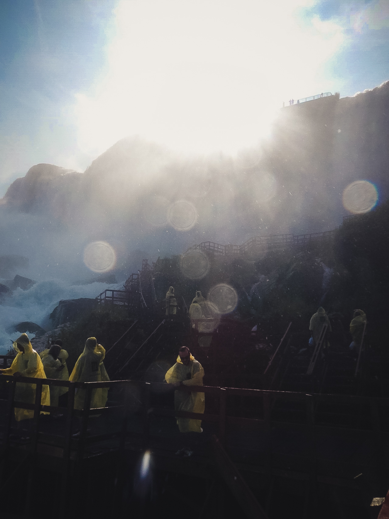 Basically, Cave of the Winds is a pathway that takes you RIGHT to the base of Bridal Veil and American Falls. It’s pretty incredible. I’d say overall, Cave of the Winds was my favorite experience at Niagara. You can choose to go on the “Hurricane Deck” which is the most intense part, or you can easily walk around it. Brian and I went all in! It’s also amazing to look up at the people standing on Goad Island. You can stay as long as you want down there, taking fun photos and selfies.