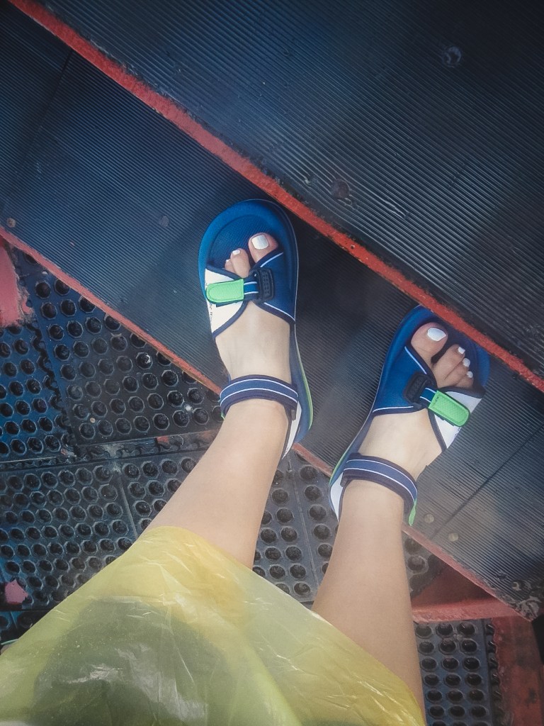 Right below the observation deck (you take an elevator down) is where you catch the Maid of the Mist boat ride. The boat ride is only about 15 minutes, but WOW is it intense. The boat takes you in front of Bridal Veil and American Falls then continues on to Horseshoe Falls. The boat parks right in the center of the falls and the POWER of the water is insane. I’ve never experienced anything like it. We went at about 11am and again, walked right onto a boat. Maid of the Mist gives you another poncho, but NO shoes this time. Since we had already been to Cave of the Winds, we just kept our sandals on. I’d highly recommend this as your feet definitely get wet on the boat.
