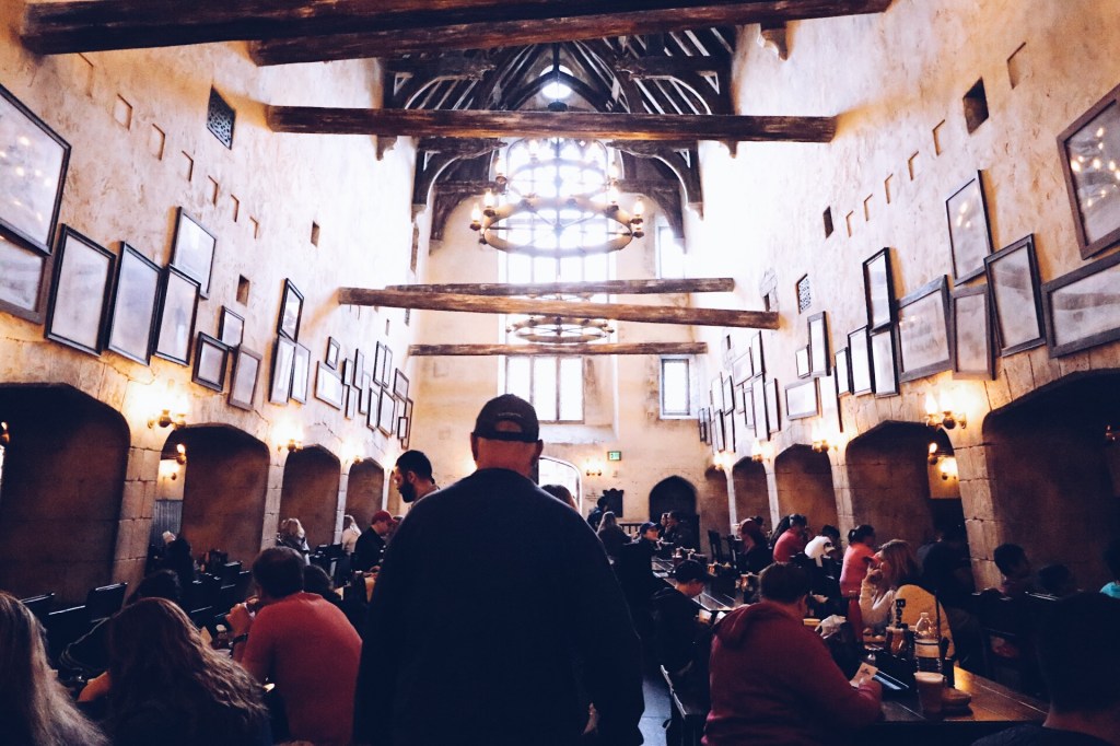 After thoroughly exploring Diagon Alley at a very leisurely pace, we got back on the Hogwarts Express and went to Hogsmeade for some lunch at around noon. The videos played on the train are different each way, so be sure to ride it to and from both parks at least once. In Hogsmeade, we ate at The Three Broomsticks. They have a wide variety of basic food and sandwiches. It’s a quick service meal place, so we were able to get back out to the park in no time. The Three Broomsticks was actually pretty cool inside! I had the chicken sandwich and it was shockingly delicious.
