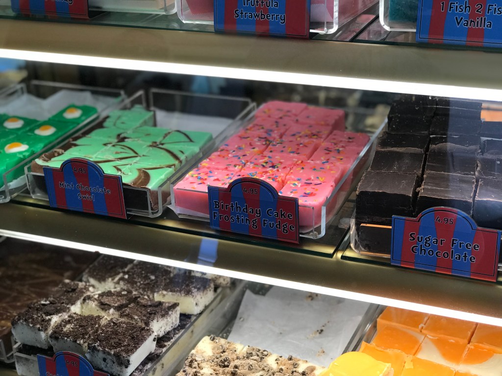 We didn’t expect to finish both parks in a day and actually found ourselves wondering what to do next around 1:00pm! We walked around the rest of Islands of Adventure to check out the other areas. While making our way to the front, we stopped to ride the Dudley Do-Right’s Ripsaw Falls (and used our Express pass!), Jurassic Park River Adventure, the Cat in the Hat ride, and the High in the Sky Seuss Trolley Train Ride. I’d actually really recommend the trolley ride in Seuss Landing, because the views are pretty amazing. We also took another snack break and got some HUGE fudge pieces from the candy shop in Seuss Landing.