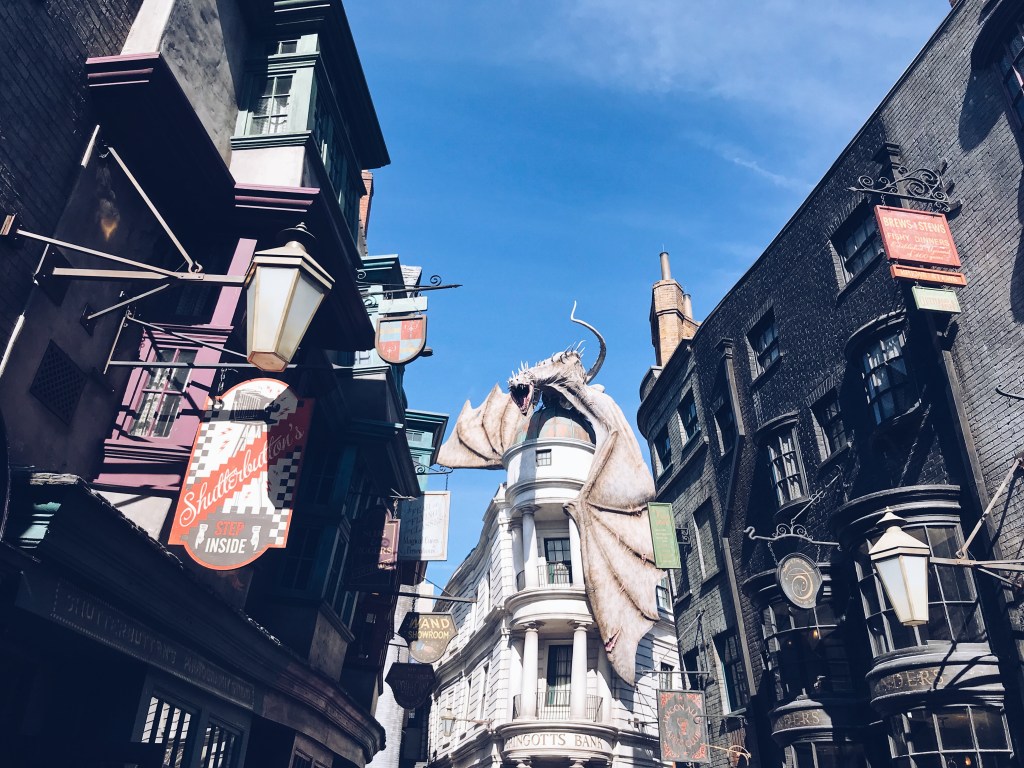 At Hogsmeade, the rides are Forbidden Journey (in the castle), Flight of the Hippogriff, and the Hogwarts Express: Hogsmeade Station. The Hogwarts Express takes you to Kings Cross Station, where you can experience the other half of The Wizarding World of Harry Potter – Diagon Alley. At Diagon Alley, the one ride is Escape from Gringotts. I know that before I visited the theme park, I spent hours researching these rides. I have pretty severe motion sickness and so I wanted to know what I was getting into. Unfortunately, I wasn’t able to find many descriptions of the rides and that caused me some anxiety. I didn’t like not knowing what I was getting myself into! Here’s my best recap of the rides. I hope this helps you!