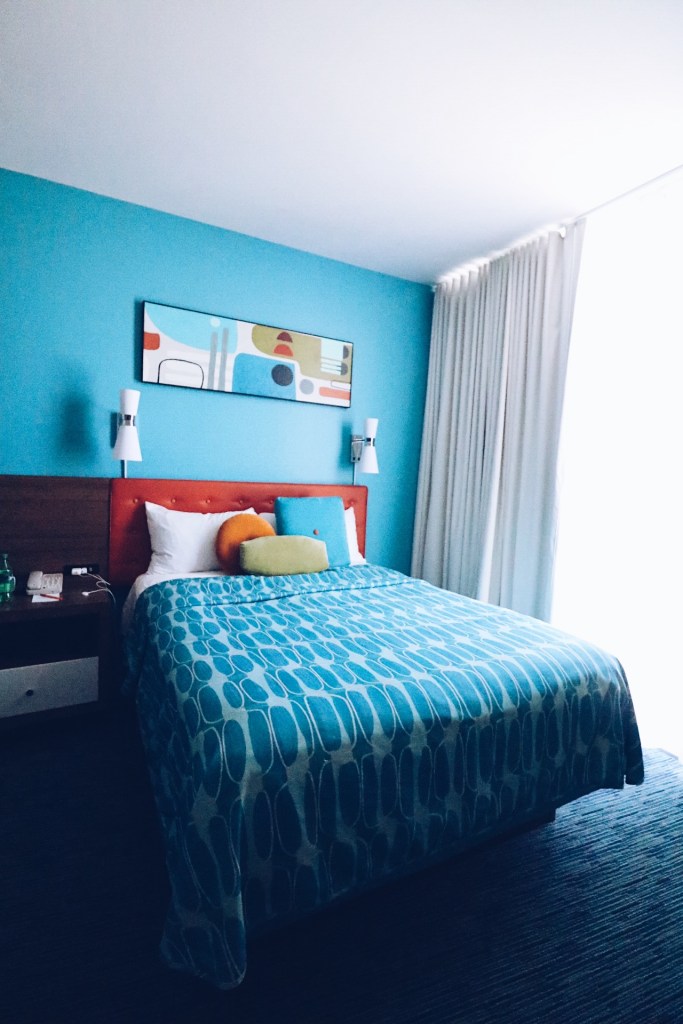 I flew in Friday night after work. It made for a late night (after midnight), but what was most important was that we were ready to go bright and early Saturday morning, so we decided the late night was worth it. We stayed at the fun and retro Cabana Bay, one of Universal’s hotels. Some of the perks include a massive food court, two huge pools with a lazy river, the Atomic Tonic bar, and plenty of outdoor, “beachfront” relaxation space. If you have more time to spend, Volcano Bay, the water park, is a short walk from Cabana Bay. This requires its own separate ticket, though. When I travel, there are only a few things I care about when it comes to hotels, Is it quiet? Is it comfortable? Is it convenient? Cabana Bay is a “yes” to all three. The best perk Cabana Bay offers is that by staying at this hotel, you get access to the parks an hour early, courtesy of a complimentary shuttle!