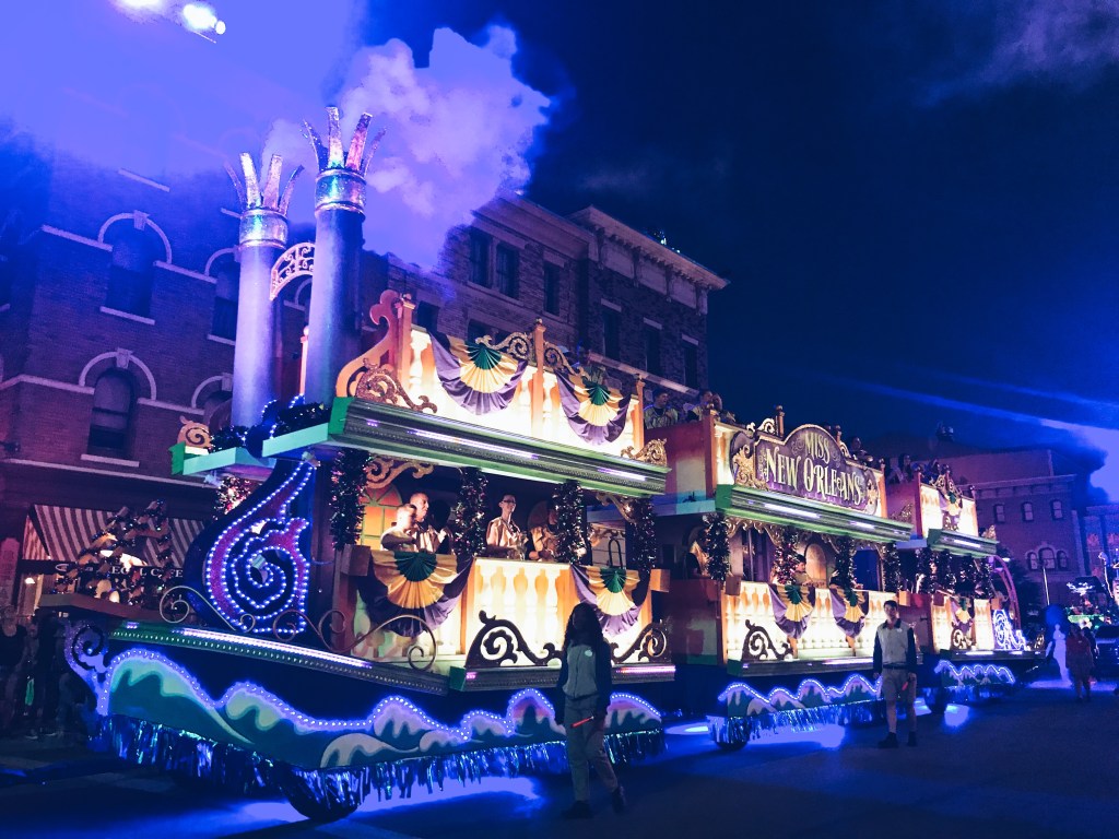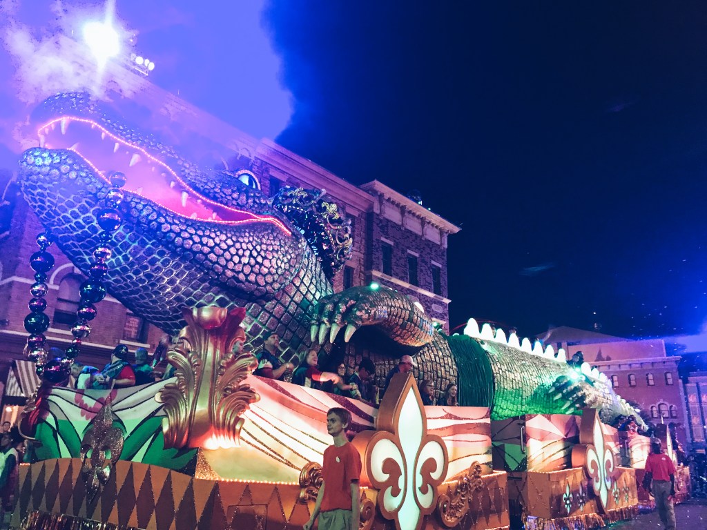 After a leisurely evening of sightseeing, shopping, and eating, we picked up the pace once the sun went down. At night, don’t miss the Mardi Gras parade at Universal Studios! The floats and performers are pretty impressive. It was a ton of fun and I got some awesome photos. After the parade, follow the crowd of people out of Universal, through Islands of Adventure, and back to Hogsmeade to see the nighttime lights show at the Hogwarts castle. We stood on the bridge by the Butterbeer cart and had a perfect view! After the show, turn to your family and friends, high-five them, and make your way back to the shuttles for some well-deserved SLEEP.