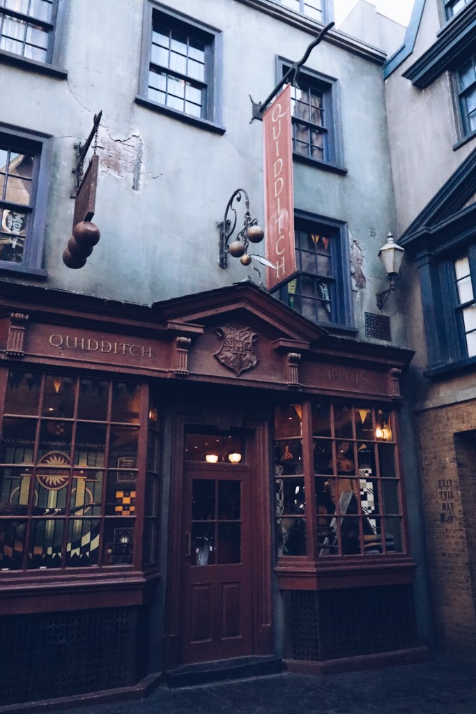 After exiting Forbidden Journey at around 8:30am or so, we walked right across the path to do the Flight of the Hippogriff. There was no line, so we rode it two or three times! That covered the rides for Hogsmeade, so we went straight to the Hogwarts Express and road that to Diagon Alley in Universal Studios. We figured we could sightsee and shop after the rides.