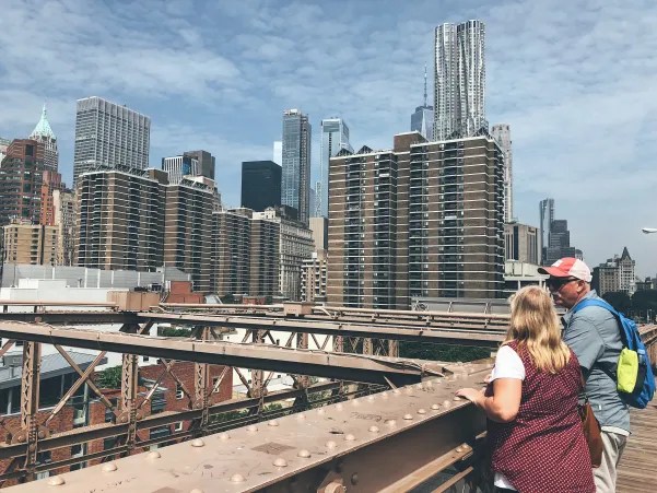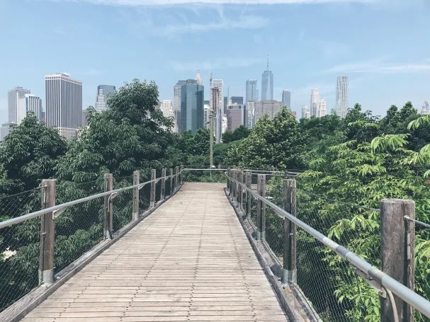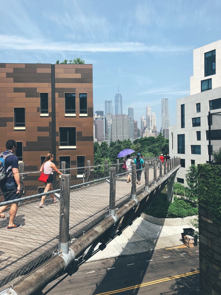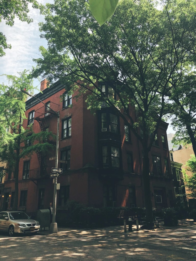 - Once on the Brooklyn side, we walked down to the Brooklyn Heights neighborhood. There are some pretty beautiful streets lined with historically preserved brownstones. There are plenty of cafes and cute places along the main streets to stop and grab a snack or coffee. As you walk towards the Promenade from Brooklyn Heights, there’s a pretty awesome pedestrian walkway.