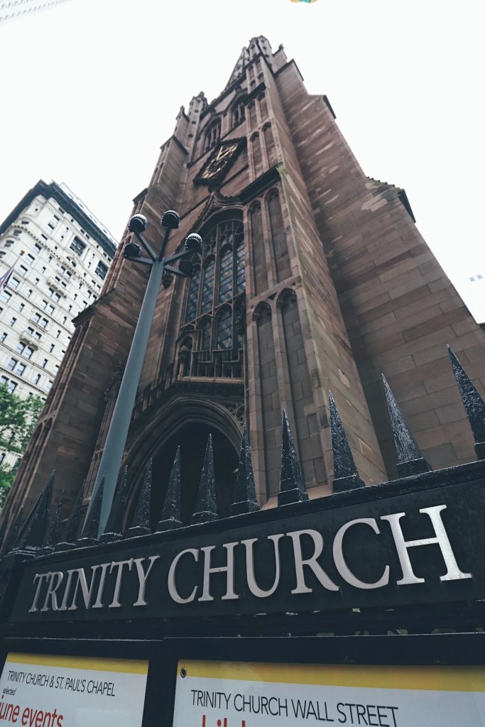 - We did a quick loop that included seeing the New York Stock Exchange, Trinity Church, and the small, one way streets associated with the financial district. We tried to see the Charging Bull and Fearless girl, but there were SO many people around them! It was absurdly crowded. I didn’t even get a photo.