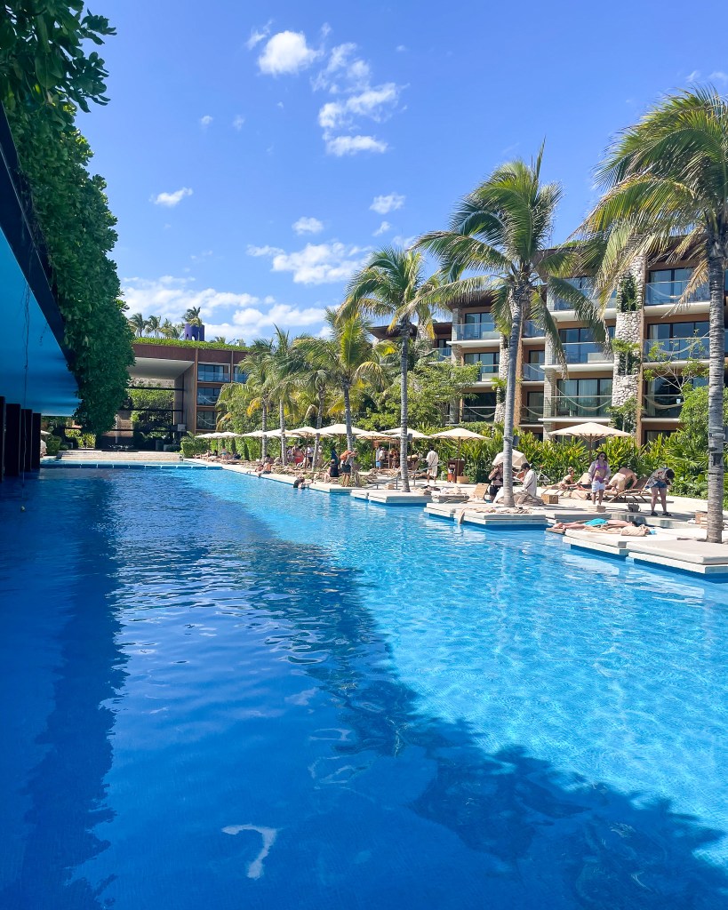 UPDATE: Another pool recommendation would be the rooftop pool on the Diseño building. They have covered lounges, chair-side service, and a food menu! 10/10, definitely my favorite pool now.