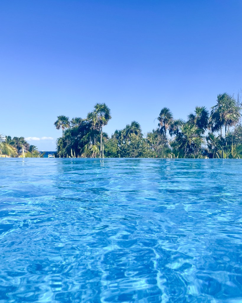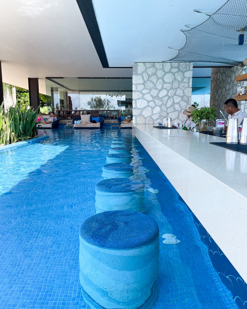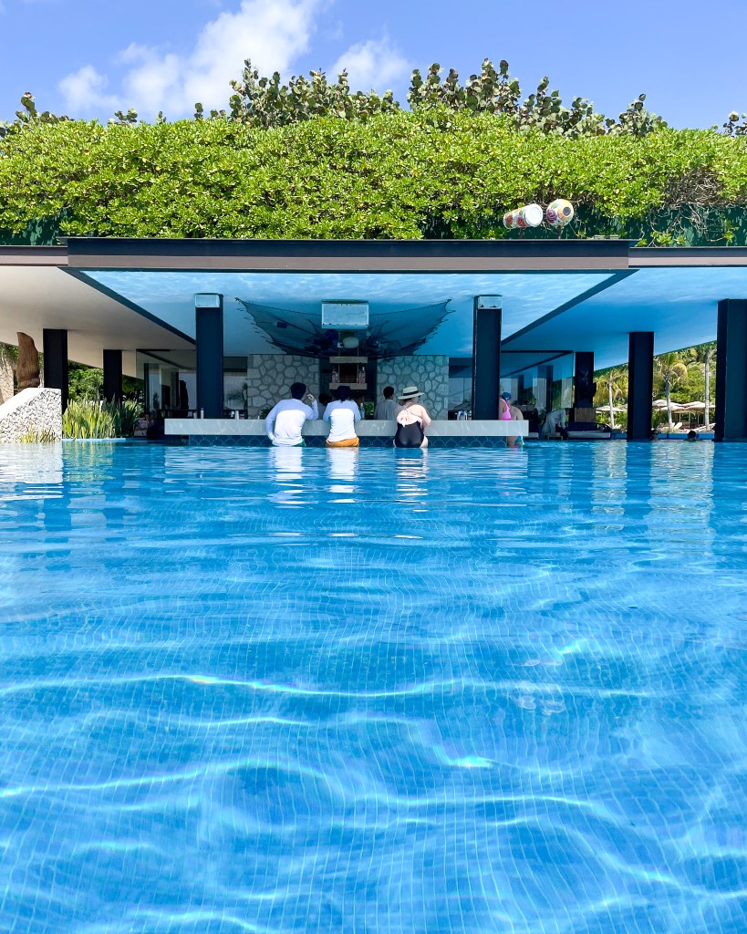 After wandering, we landed at the pool! There are lots of lounging pads and poolside chairs at the main pool. There’s a swim up bar on addition to people walking around taking orders. If it’s super crowded, you can still lounge in the pool. There are areas that are not very deep and (being an adults only resort), no one was splashing around. It was all super chill and relaxed.