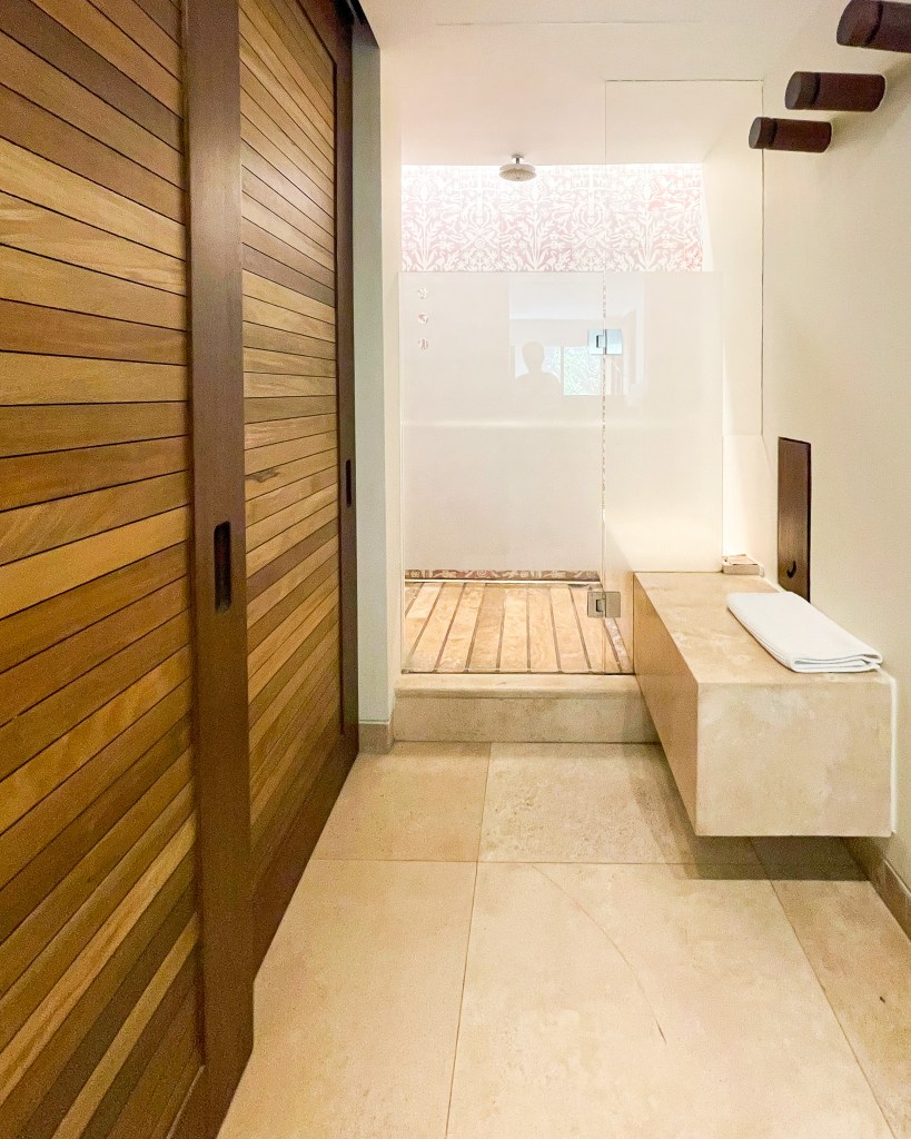 After lunch, we went to where our bags were being held and snagged our swim suits. They have a beautiful changing room area where you can use lockers to store things.