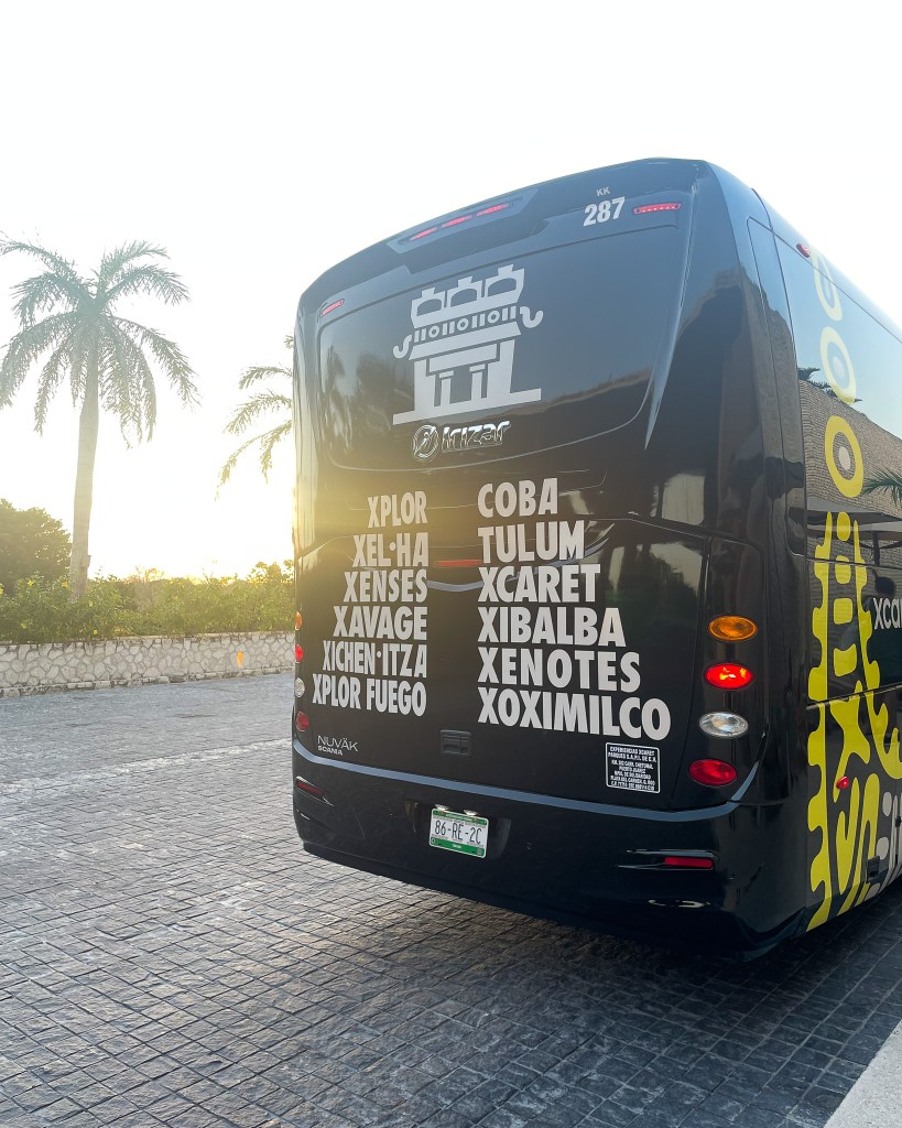 When you walk outside of baggage claim, beeline for the representatives from your resort. There will be lots of people trying to get your attention, but stay zeroed in on finding your resort signage. Xcaret was wearing bright pink. Once you find them they’ll check you in and lead you to the where the bus will pick you up.