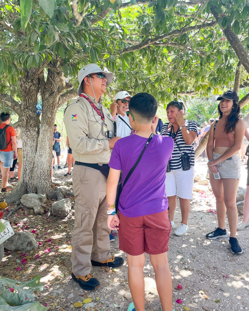 We were in Chichen Itza for 2 hours. We spent about an hour and 15 minutes together with our tour guide and then 45 minutes walking and exploring on our own. It takes longer to walk out than you would think, the exit meanders a bit. Also, another pro tip, take a photo of your bus number so you don’t forget! You won’t be the only Xcaret tour bus there.