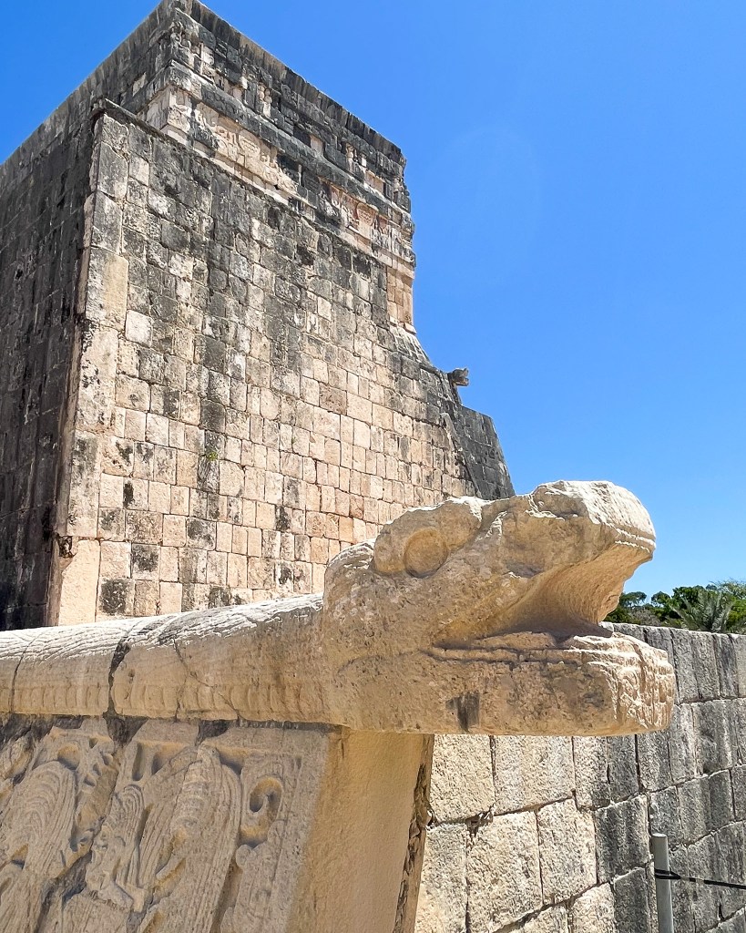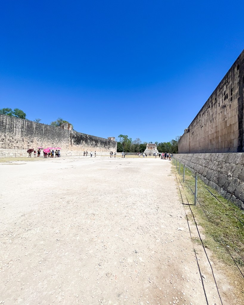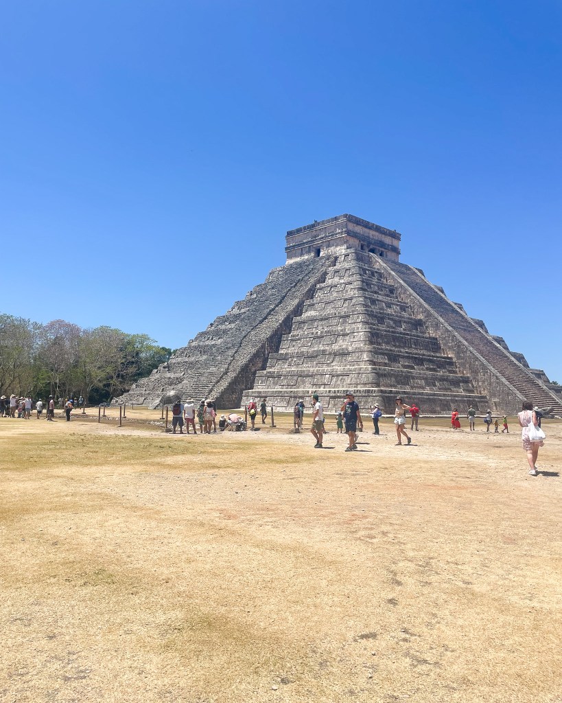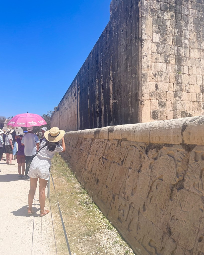 At Chichen Itza, the tour guides give you your entry ticket, a headset, a water bottle, and umbrellas (if needed, it’s HOT and sunny). There are big crowds at the entrance which can be a bit overwhelming. I’d recommend going to the restroom on the left, as soon as you arrive, BEFORE you walk through the ticket stalls. Our guide said there are bathrooms inside, but not sometimes they are closed. I never saw bathrooms.
