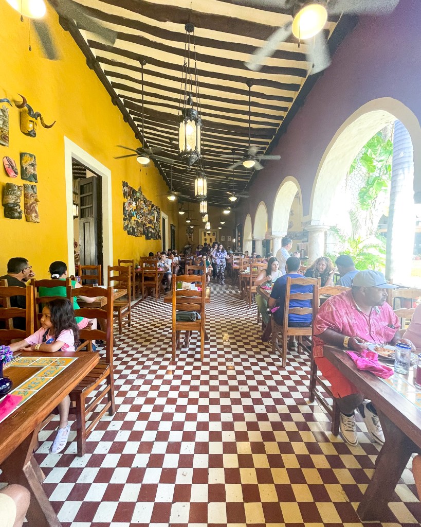 By around 3:15, we had made it to Valladolid where we ate lunch (included) at Casando. They’re known for their agua frescas, so be sure to get some! It’s a buffet, so once you get your drinks, go fill up a plate with foods from the Yucatán. After eating, we walked around the Central Park for a bit, snapped some pics of the Templo de San Servacio, and then hopped back on the bus for another 2 hour ride back to the hotel.