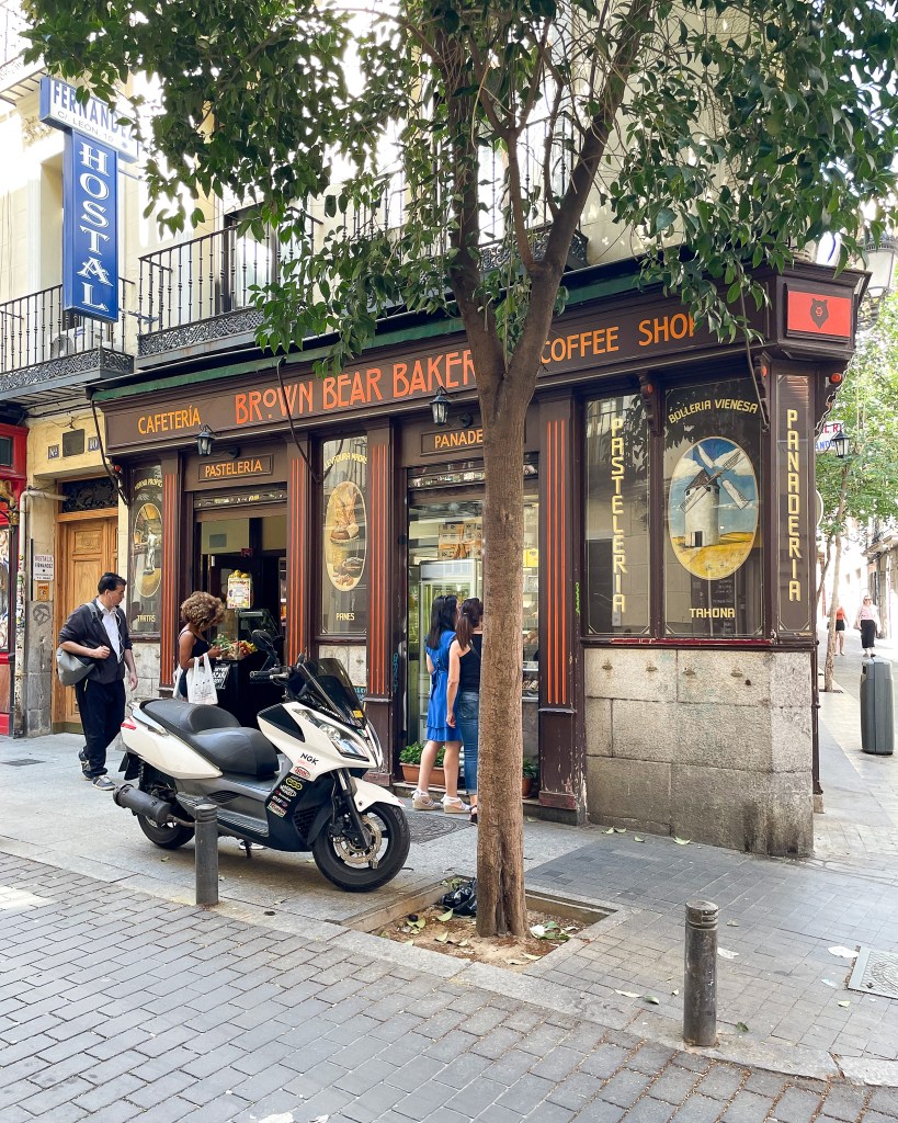 A couple of highlights from this neighborhood included Brown Bear Bakery for pastries and coffees, Lola si Mola for dinner paella, and a cocktail bar that we cannot remember the name of… it was definitely on the main Calle de las Huertas, on a corner. It had an outdoor patio space that was jungle-feeling. I’m actually headed back to Madrid in a couple weeks, so I’ll see if I can find it again.