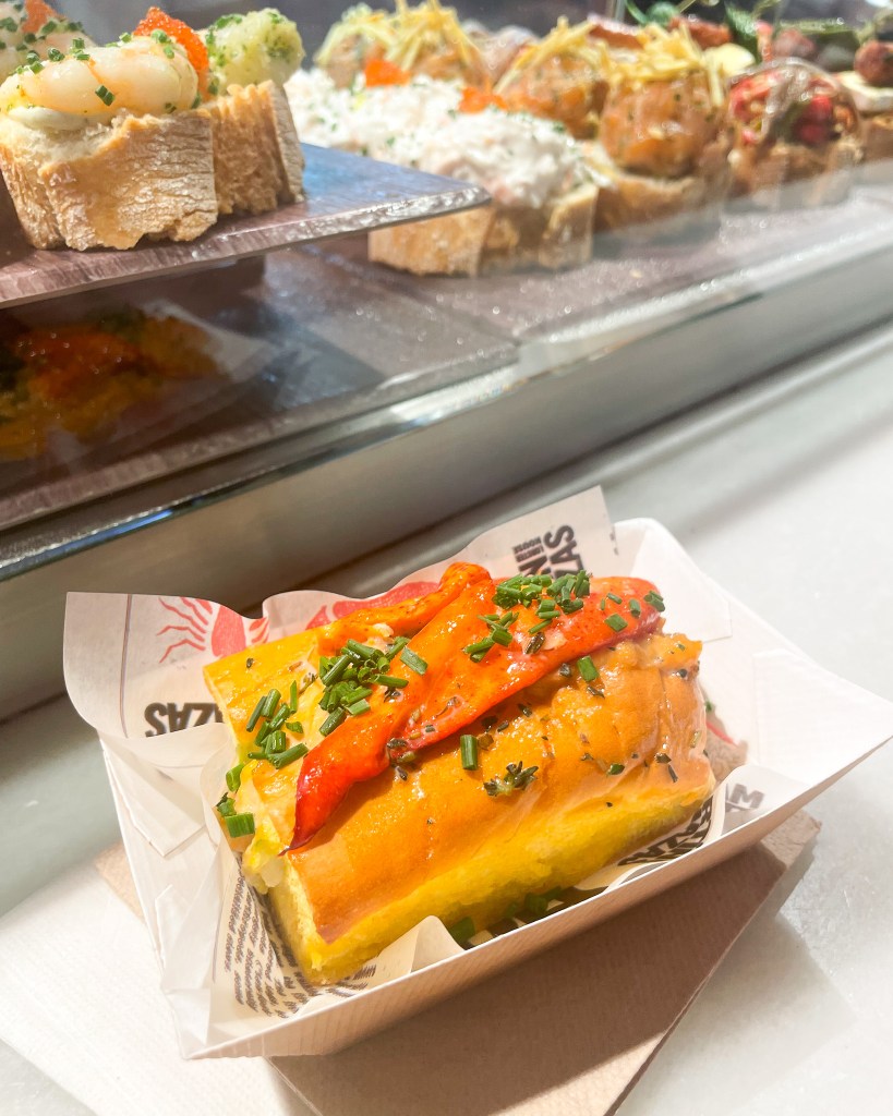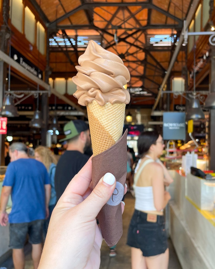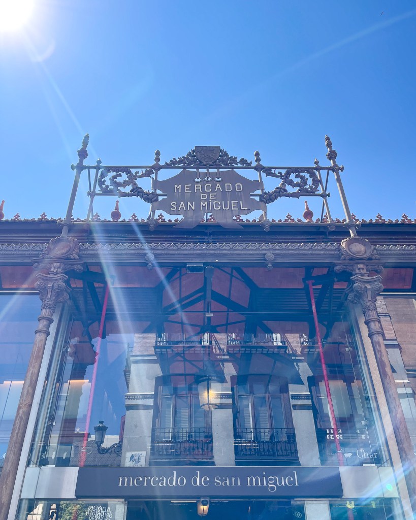 From laundry, we went to the Mercado de San Miguel (also, RIGHT next to the hotel). Overall, I think this was my favorite market. It was absolutely PACKED (like, completely shoulder to shoulder), so I had to step out of my comfort zone if I wanted to order anything. By the end though, I’d purchased food from several different stalls and brought them all back to Brian, who had secured us some beers and standing room at one of the market bars. Mercado de San Miguel specializes in mostly prepared foods, so you can go here to have meals (as compared to some of the other Spanish markets that are more like open air grocery stores).