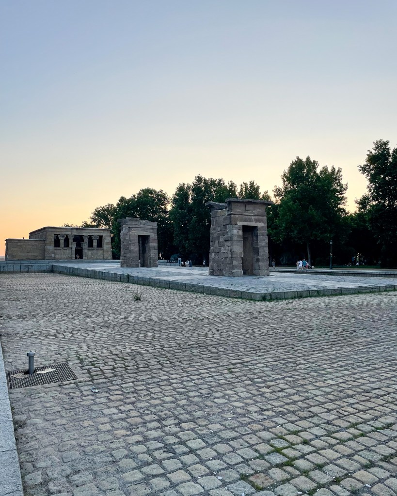 From the Palacio, we cut up the hill to the Templo de Debod. This ancient Egyptian temple was moved from Aswan, Egypt to Madrid and now exists inside Parque Oeste. The real highlight, though, is the sunset views. Huge crowds of people gather there every evening to watch it.