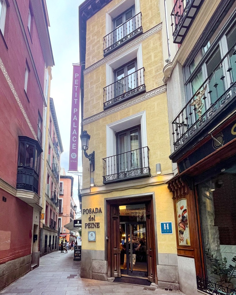 Pros: LOCATION LOCATION LOCATION. When we arrived, we thought, we’re tired… let’s just go walk around the block and see what’s here and BOOM. We walked right into Plaza Mayor. Absolutely insane. It’s also very close to the Puerto del Sol city center, where the Sol metro stop is, and next to the Mercado de San Miguel. We got a basic room and were able to open our windows out to a small patio balcony. I also never heard another person in the hotel the whole time we were there! Very quiet.