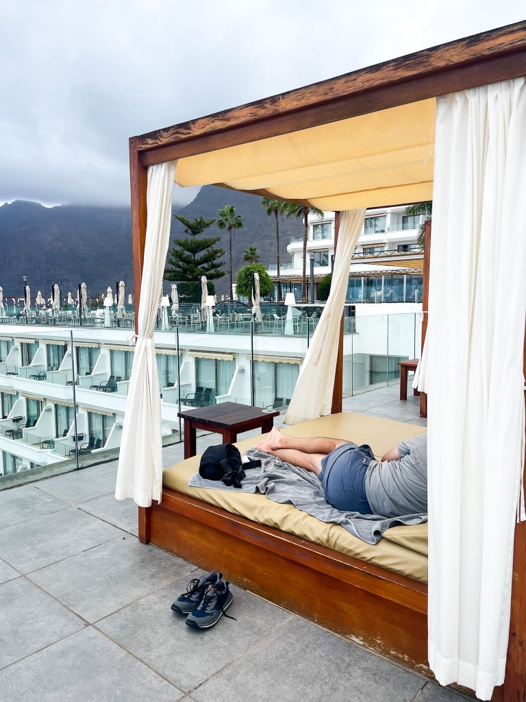 On our last day in Tenerife, we decided to rent another pool cabana. This time, we opted for the Cava option only, which was 55 Euros. We used this day to rest and plan for the next leg of our trip – Portugal!