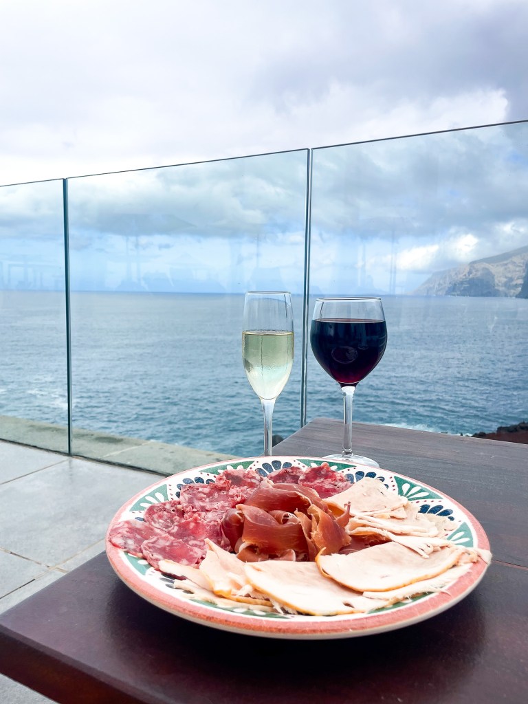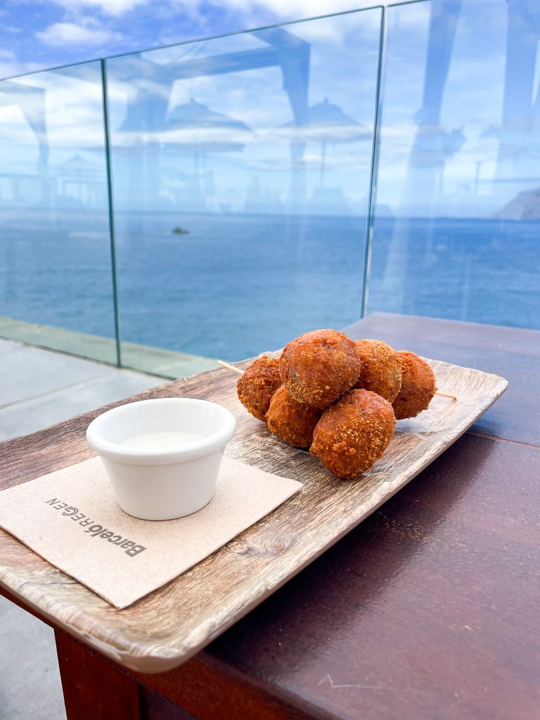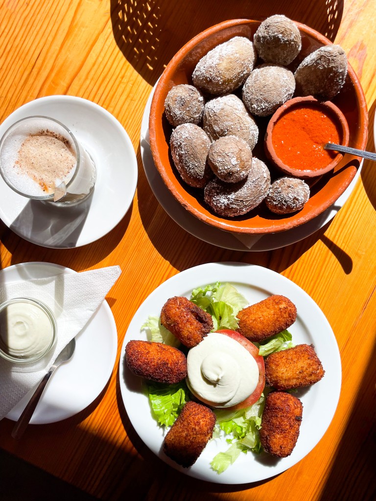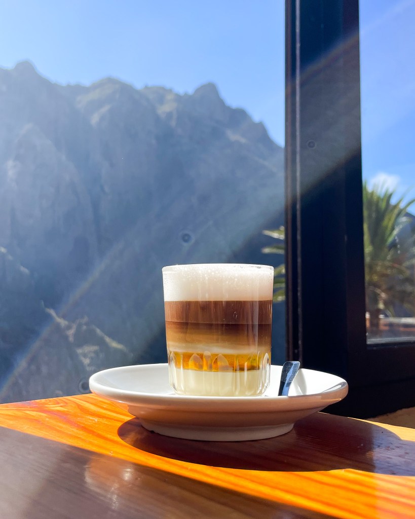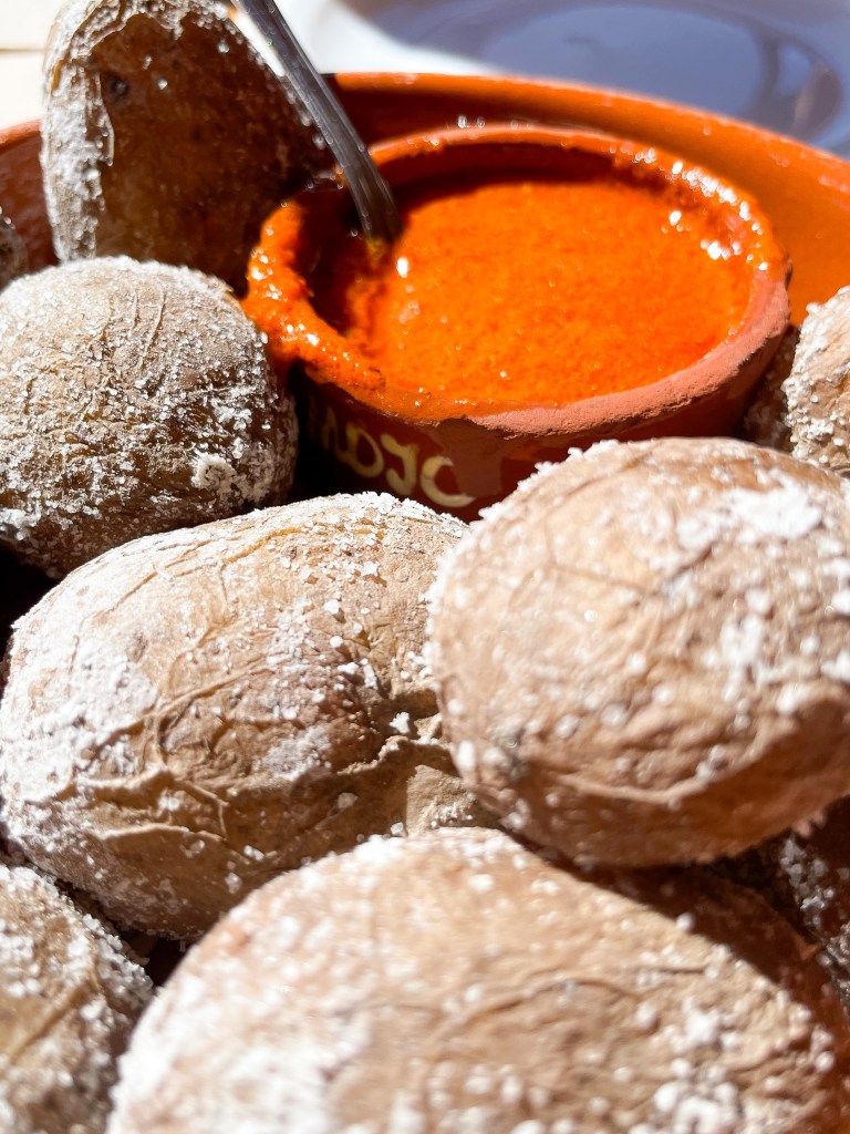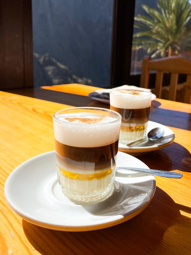 We started at Bar Blanky – Casa Fidel and loved it. Authentic Canarian food, kind service, and stunning views. We tried Canarian potatoes with mojo and barroquitos for the first time. Canarian potatoes are whole mini potatoes coated in salt. Mojo is a spicy red pepper sauce made with hot local peppers, olive oil, vinegar, garlic and seasonings. When you put the two together, they are so delicious! We ordered Canarian potatoes every chance we had after this. A barraquito is a coffee/alcoholic drink made from a layerd combination of espresso, Licor 43, and condensed milk served warm. Again, so tasty and this was definitely not my last one.