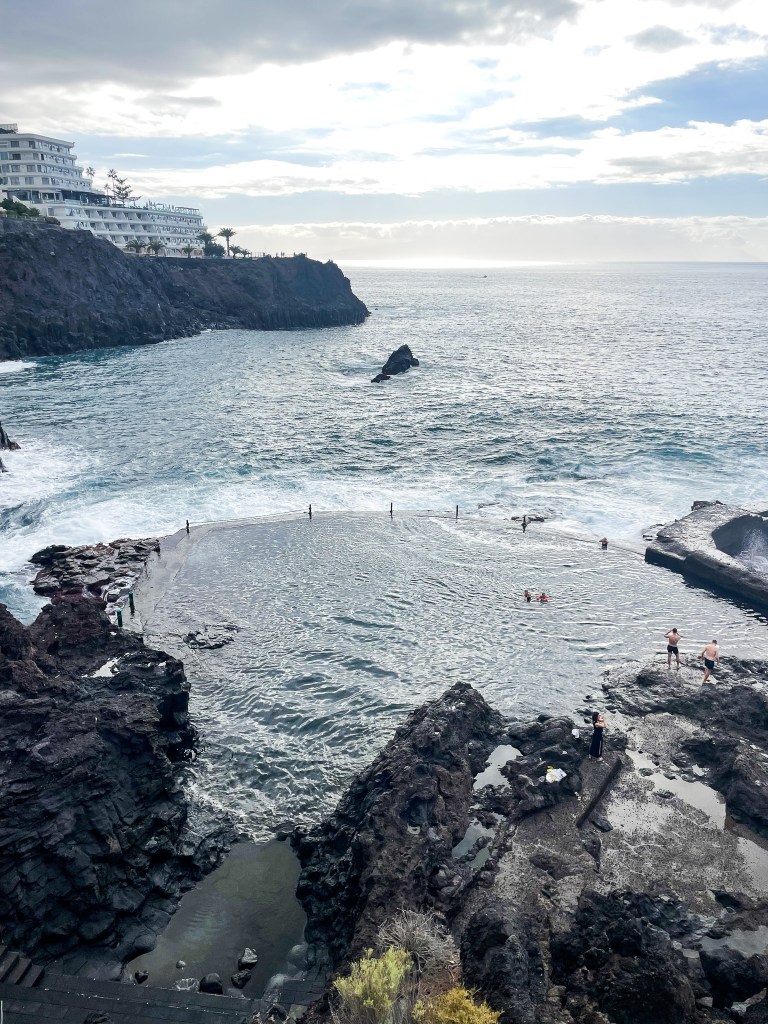 In the afternoon, we decided to take a break from lounging and walk to the natural pools. To get there, follow the waterfront pathway that goes behind the Barcelo hotel towards the Mirador Los Gigantes (you can walk there whether or not you stay at the hotel, it’s a public walkway). Snag a few incredible photos at the Mirador Los Gigantes, then continue on the pathway until it drops you off on Calle la Hondura. Make an immediate left to continue walking along the waterfront and follow signs to La Piscina Naturales. At the end of the alley, you may encounter a barrier in front of the steps leading down to the pool, but you can easily walk through it.