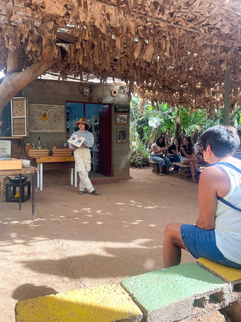 The walking and talking part of the tour is about 40 minutes, followed by a tasting of plantanos and plantano treats (including wine!). We bought a bottle of banana wine and some dried plantanos for the hotel.