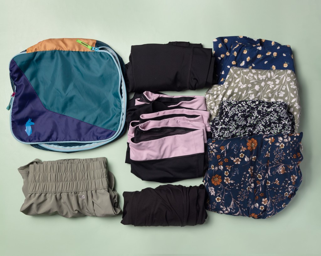 Ok, now let’s dive into the nitty gritty! I use the Cotopaxi Allpa 35L backpack. I’ve used it on several trips now as my only luggage and I absolutely love it. It’s super comfy (even when I’ve got it packed to the max) and durable. It fully unzips like a regular suitcase, has a wonderful top pack where I store my tech and liquids for easy access at TSA, and has a protected laptop sleeve in the back. I don’t always bring my laptop, so sometimes I use that slot to help transport artwork that needs to stay flat and protected.