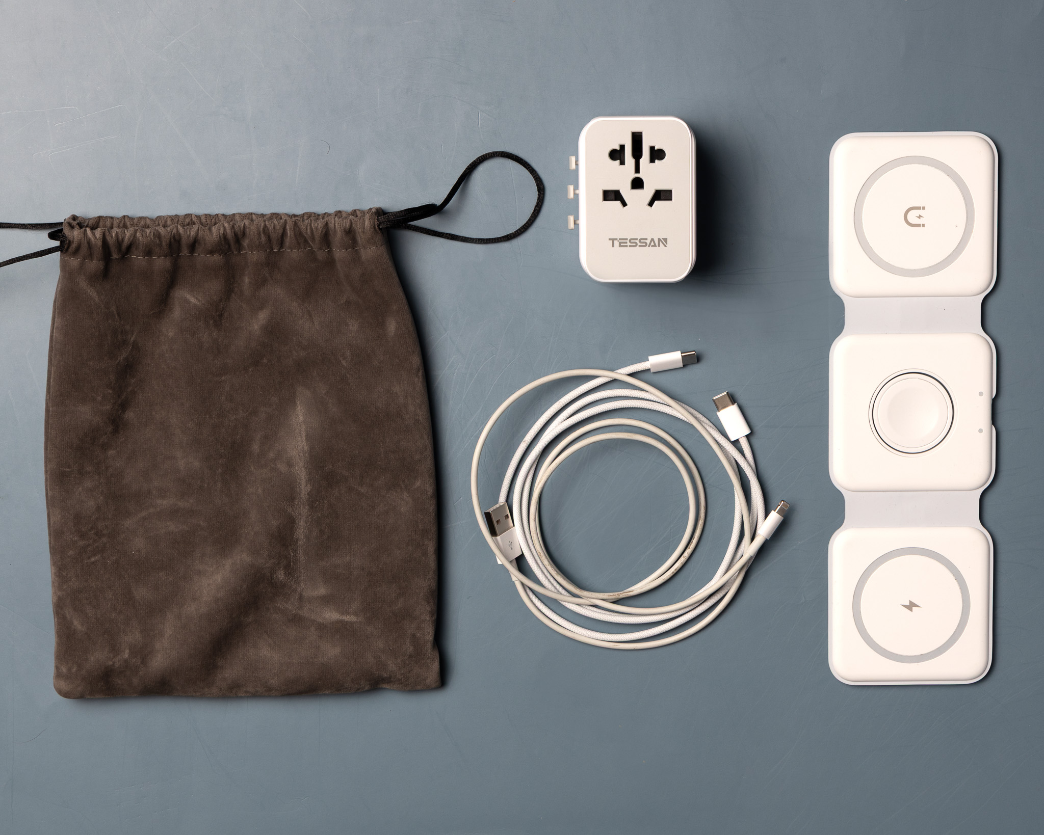 - 2 USB C (make sure one is a USB A to C, so that you can use it in the airplane/airport chargers!)