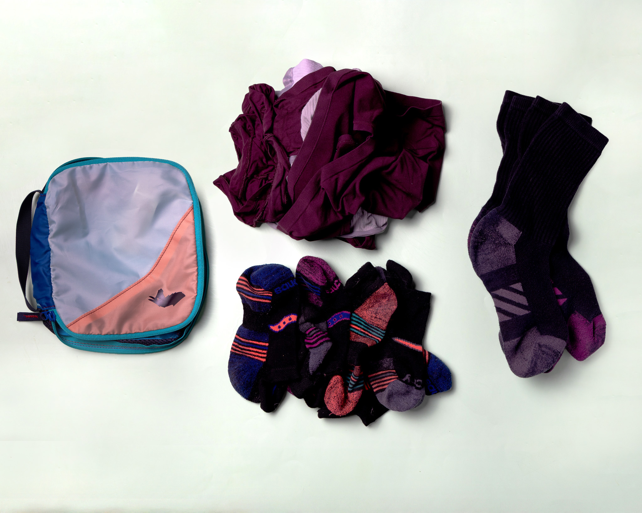 - Medium Packing Cube: Tennis Shoes w/ two pairs of short socks (not pictured)
